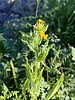 Amsinckia menziesii var. intermedia (Ams Common Names Habitat Flowers The small flowers of Amsinckia intermedia are yellow to orange in color. They grow at closely spaced intervals along one side of a straightening stem, and into a denser cluster at the top which curves into the shape of a fiddleneck. DescriptionThe stems and narrow green leaves have a covering of long, bristly, white hairs. Leaves are large around the base of the stem, up to 6 inches in length, but much reduced higher up. It can grow up to 40 inches (1 m) tall, but usually half that or less. Comments They get their name from their flower stems, which bear a large number small flowers, and curl over at the top in a way that somewhat suggests the head of a violin. Source: Wikipedia This weedy plant can be abundant after unusually wet winters, and dense patches of it can cover the ground. This plant is poisonous. The seeds contain the toxic pyrrolizidine alkaloids intermedine and lycopsamine. The plants are covered in sharp, brittle hairs that can irritate human skin (especially when the plants are dry), so do not walk through a patch of dried common fiddleneck if you have bare legs. |