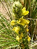 Verbascum thapsus Common Names: Candlewick Habitat: Roadsides, open & disturbed areas Flowers: Yellow, multiple Description: Up to 6 foot stalk Comments: Took over slopes of Aztec Peak after fire Weeds are the bane of a gardener's existence, but sometimes even weeds can have some interesting features. Most people with good judgment consider mullen a weed, but I confess to allowing it to grow in my perennial border when it happens to appear unannounced and uninvited amongst its more showy brethren. Mullen is a biennial that grows only leaves the first year and then flowers and dies the second year. During the first year, it can produce 18-inch long wooly gray leaves that form a bushel basket-size rosette. When it flowers in spring of its second season, the rosette stretches out and forms a spike that grows 5 feet high. The spike will often branch at the top, producing arms shaped like those of Saguaro cactus of the Arizona desert. Its bright yellow flowers have five petals. It's not obvious that the plant is a member of the snapdragon family. The common mullen is not native to the United States. It's an introduced weed from Eurasia. It was probably introduced during colonial times as a medicinal herb. It's leaves have been used as a wrapper - kind of a botanical version of Saran Wrap - for keeping food from spoiling. The monks of the Middle Ages grew mullen for a number of ailments, especially those associated with coughs and congestion. One of its common names was "bullocks lungwort," taken from a common home cure used to treat cattle with coughs and pneumonia. Sap from the crushed leaves of the plant is said to alleviate the pain of insect bites. But what I find most fascinating about the common mullen is its desire to live. Back in 1879, Professor William Beal (1833-1924), a botanist at the University of Michigan, began an experiment that continues to this date. In the fall of that year, Beal collected seeds of 23 common weeds and placed them in sand in pint jars. The jars were buried on a sandy knoll in what today is the five-acre W.J. Beal Botanic Garden. Originally, the jars were dug every five years, but the number of jars began to decline, and now they're dug up every 20 years. The most recent set of jars was dug up in 1999. Most of the seedlings that emerged after 120 years buried in the cold Michigan soil were the moth mullen, a closely related species, but the common mullen also made its presence known. These tenacious seeds remained in a state of suspended animation for more than a century, awaiting their day in the sun. Most of Beal's weed species were real wimps, remaining viable for only 20 years. Only five species managed to remain viable after 50 years. Even if you don't consider mullen a suitable garden plant, we can learn from Professor Beal's study. First, every shovelful of soil contains hundreds or maybe even thousands of seeds, most of which are undesirable. Gardeners should do all they can not to add to this collection by allowing weeds, or weedy flowers, to go to seed. Second, most of these long-lived weed seeds need light to germinate, so applying a mulch as quickly after planting as possible will keep the seed in the dark and reduce the amount of weeding that will be necessary. By: Gerald Klingaman, retired Extension Horticulturist - Ornamentals Extension News - May 18, 2001 |