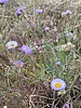 Erigeron spp. Common Names aka fleabane daisy. Flowers numerous slender rays in several layers around a yellow center. Description herb, biennial. up to 18" tall. the leaves and stems are hairy. Comments Mostly we stick any fleabane in this generic fleabane listing and don't worry about subclassifications. We're hikers, not botanists. Even botanists can struggle with identifying an artistic photo. The most common fleabane in AZ is probably Spreading Fleabane (Erigeron divergens). There are probably some Aspen Fleabanes. If you can identify the subspecies from the photo, let's talk about moving it. |