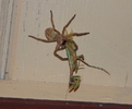CommentsAs adults, huntsman spiders do not build webs, but hunt and forage for food: their diet consists primarily of insects and other invertebrates, and occasionally small skinks and geckos. They live in the crevices of tree bark, but will frequently wander into homes and vehicles. They are able to travel extremely fast, often using a springing jump while running, and walk on walls and even on ceilings. They also tend to exhibit a "cling" reflex if picked up, making them difficult to shake off and much more likely to bite. The females are fierce defenders of their egg sacs and young. They will generally make a threat display if provoked, but if the warning is ignored they may attack and bite. The egg sacs differ fairly widely among the various genera. For example, Palystes females generally suspend large purses in bushes. The sac is reinforced with dead leaves and similar material; if built indoors without disturbance, scraps of paper might be collected and used instead. Like practically all spiders apart from the Uloboridae, Sparassidae use venom to immobilise prey and to assist in digestion. They have been known to inflict defensive bites, but are not widely regarded as dangerous to healthy humans.[6] Huntsman spiders are widely considered beneficial because they feed on insect pests such as cockroaches.