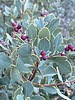 Garrya wrightii Torr. Distribution The plant is native to northern Mexico and to the southwestern United States in Arizona, New Mexico, and Texas. It is found growing on rocky slopes and in crevices of cliffs, from 5,000–8,000 feet in elevation. Description Garrya wrightii is a shrub slowly growing up to 12–36 feet tall. It has branches that are square in cross-section and thick, tough leaves. The species is dioecious with male and female reproductive parts occurring on separate plants. Both flower types are borne in catkin-like spikes. They are green. The fruit is a rounded purple berry under a centimeter wide containing one or two seeds. The seeds are dispersed by birds that eat the berries. Ecology This shrub grows in chaparral, pinyon-juniper woodlands, and Madrean pine-oak woodlands. It is rarely dominant but it occurs in many types of plant communities. It grows alongside many species of oak such as Emory oak (Quercus emoryi), gray oak (Quercus grisea), and Coahuila scrub oak (Quercus intricata). Other plants in the habitats may include birchleaf mountain-mahogany (Cercocarpus betuloides), true mountain-mahogany (Cercocarpus montanus), skunkbush sumac (Rhus trilobata), desert ceanothus (Ceanothus greggii), pointleaf manzanita (Arctostaphylos pungens), Pringle manzanita (Arctostaphylos pringlei), yellowleaf silktassel (Garrya flavescens), and hollyleaf buckthorn (Rhamnus crocea). It is adapted to wildfire-prone habitat, resprouting after being top-killed in fires. Uses Small amounts of rubber can be made from it. Livestock occasionally eat the plant, goats are especially partial to it. Cattle tend to dislike it because of its bitter taste. Many wild ungulates, such as mule deer, bighorn sheep, and elk browse it. Source Wikipedia |