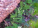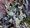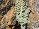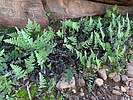 Cheilanthes Wootonii Description: Triangular bright green tripinnate leaves, smooth and hairless above, with overlapping brown scales below. Often in dense clusters of stands, sun or part shade beside granite boulders or among shrubs, lechugilla, etc. Probably the most common of the "bead ferns" after C. Lindheimeri. Habitat: AZ, CA, CO, NM, NV, OK, TX, UT |
