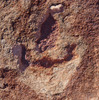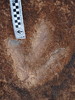 Eubrontes is what paleontologists call an ichnogenus. An ichnogenus is a classification of fossil prints, since it is impossible to determine what organism made the track or print. This allows scientists to discuss and compare prints to one another. Eubrontes is a large tridactyl (three toed) footprint found in Triassic and Jurassic aged rocks across North America. Its large size and robust appearance make it easy to identify. It is also one of the most common tracks from the Mesozoic in North America. |