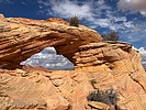Hippiepunkpirate's elaboration: The Colorado Plateau features the most famous arches in the world, and are usually made of sandstone. Arches National Park in Utah obviously the mecca of this phenomenon. These features are also fairly common throughout the desert southwest, and can be found in other rock types. A big controversy is how to define the difference between a natural arch and a natural bridge. The Natural Arch and Bridge Society (NABS) (naturalarches.com) defines a natural bridge as a type of natural arch. Using the NABS definition and criteria, a separate label has been created for natural bridges. According to NABS, a natural bridge meets at least one of the following: - a current of water, such as a stream, clearly was a major agent in the formation of the opening (hole) - a current of water, such as a stream, flows through the opening (hole) - it is being, or has been, used by man as a bridge supporting a portion of a road - it has the general appearance of a man-made bridge, e.g., a flat, level top over an arched opening If the arch you are labeling meets one of the above criterion, please label it under "natural bridge". If it does not meet one of the above criterion, please label it under this page (natural arch). Windows, such as Window Rock rock near Canyon de Chelly, are natural arches. Examples: Delicate Arch in Arches National Park, Utah would be labeled "natural arch". Sipapu Bridge in Natural Bridges National Monument, Utah would be label "natural bridge". |