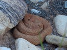 Crotalus oreganus abyssus Common Names: Habitat: Found in northwestern and north-central Arizona. Found in a variety of habitats, including grassland, Great Basin Desert scrubland, bottoms in the Grand Canyon, rolling hills and bajadas in pinion-juniper woodland, and pine forests. Description: medium to large (16" to 54") rattlesnake with dark blotches on a variety of base colors ranging from reddish, pink, yellow/green, light tan, to gray. The blotches usually become bands near the tail. The young usually have more prominent blotches and facial markings than the adults. Some adults Have no body markings. Wikipedia Comments: |