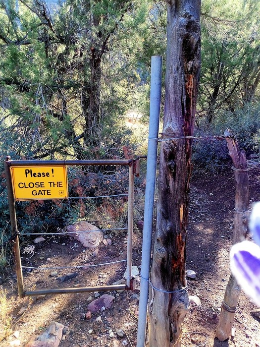 If you see this gate, then you're off course. This is the old Connector to the old Trailhead that used to be along Sycamore Creek Road. (I had passed through this gate on my way back to the Cross F TH in February, because, apparently I was lost again and missed that turn at the previous 15 foot high "gate.")