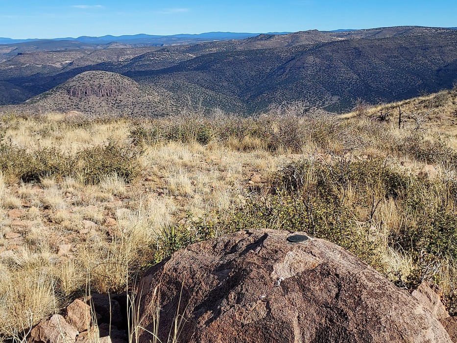 summit view to the east; the Hackberry Mountain highpoint is on the boulder in the foreground