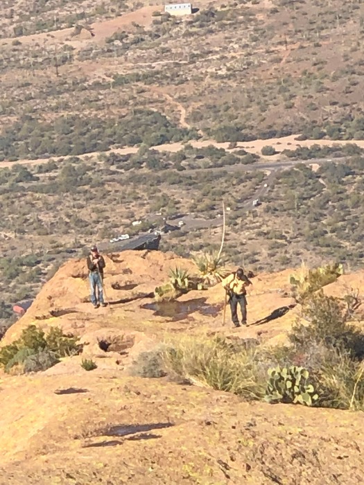 Ron and Ray were the first to drop down from the vertical wall to reach the 'diving board'. They are younger and more agile than the rest of us. It took us a while to find the courage to do the drop down. Ron encouraged us.