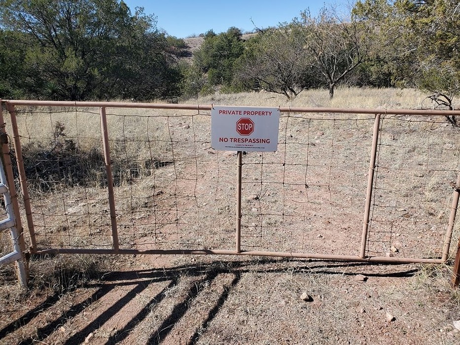 The gate was unlocked, but on the other side of the gate, after crossing through, I saw this sign that said Private Property - No Trespassing, which I thought was odd because I came from the AZ trail and there was sign or fence on the way in... By the way, this road is FS 4601. The easiest way to get from the AZT to FS 4601 is to take the road which crosses through this small piece of private property. I didn't see a single person the entire day.