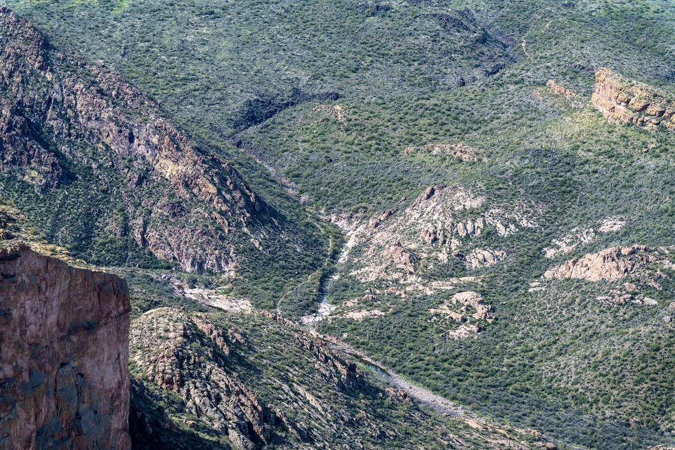 Trail coming into Boulder Canyon from Second Water. You can see the junction sign when zoomed in.