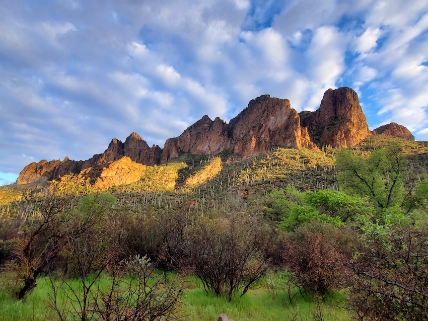 Sunrise from our first campsite, a half mile west of Charlebois Canyon.