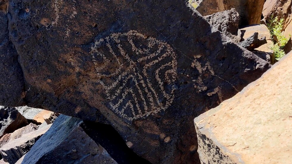 Going back down through the dark rocks I see some more glyphs. This one is familiar but most of the others as I go lower are new to me I think.