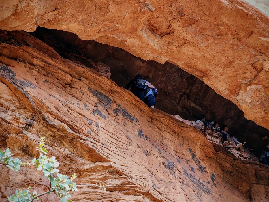 There is a ledge above the ledge (right) and a few people were hanging out there.