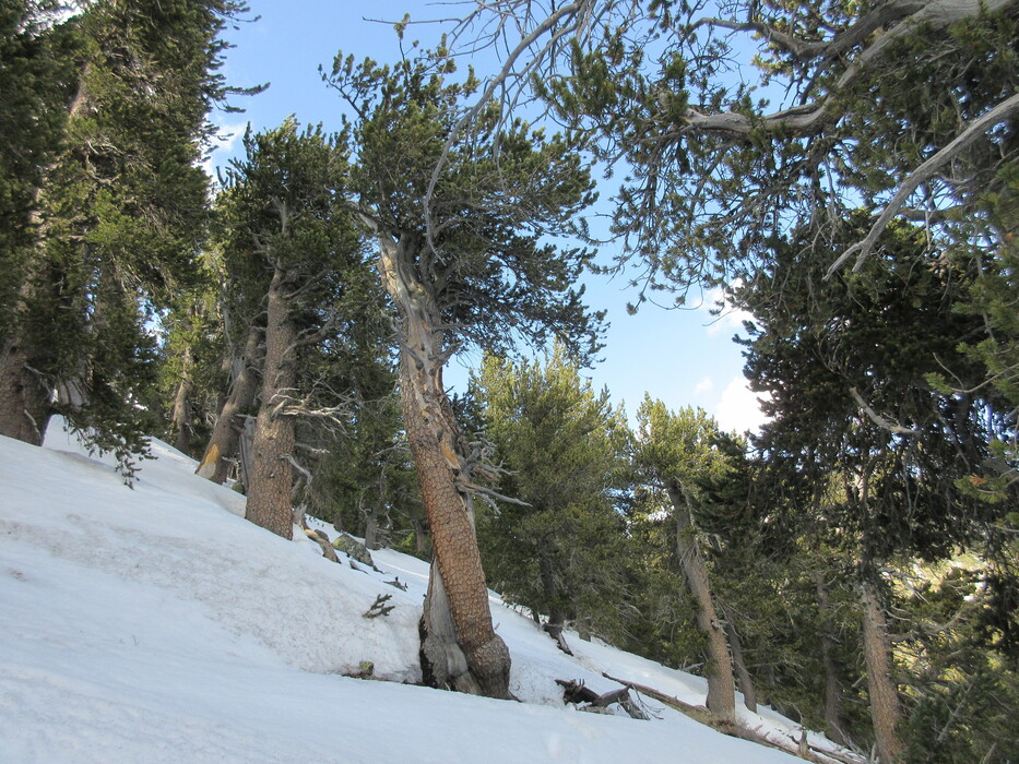 Fire scars on living bristlecone pine at over 11,000'! The Leroux Fire in June of 2001 was the last one on this slope, and it is ready for another. So are all of the ponderosa and mixed conifer above the road in the "wilderness area".
