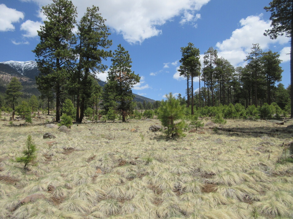Shortly after entering the old Leroux Fire scar where it did burn hot down low. When it got up into the bristlecones, it burned more like it would have over a century ago, unlike the Pipeline and Schultz which were stand replacing. Anyway, after 23 years, ponderosa pine is forming future doghair thickets, as seen with the regenration on the right in the distance. It's dense. A similar situation is happening in the areas thinned in 2008 on the lower Snowbowl Rd slopes, and US 89 just south of Flagstaff. Fire is needed, otherwise, it isn't a restoration, it is just a seed tree or shelterwood cutting.