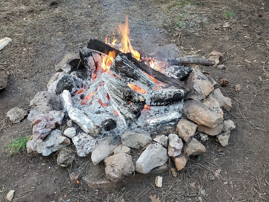 Campfires every night and morning to keep the chill off. Grandson Michael was in charge of making the campfires but putting the fires dead-out every morning and night before leaving camp was quickly using up our drinking water. We didn't have a bucket to gather water from a small trickle about a quarter mile away. So Michael and Lloyd drove to a snow drift and filled up one of their camping gear bins for the last night and morning. We discovered that snow puts out the fire just as fast, if not faster, than water.