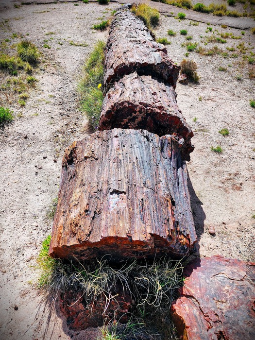 About 218 million years ago, flood waters carried fallen trees to this spot. After being quickly covered with sediment they slowly petrified their organic matter replaced by silica minerals over millions of years. Some of these prehistoric trees stood 200 feet tall. This pile-up of logs is an ancient log jam, brought to the surface again through erosion.