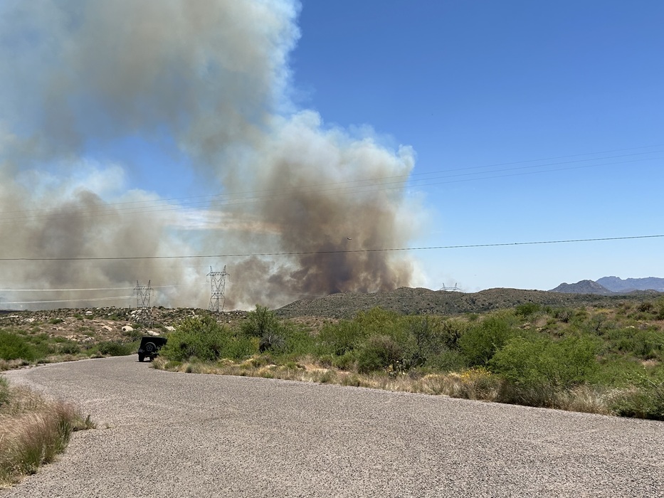 When we went to Horseshoe lake this morning a fire truck left the road in but couldn't get to the fire. Leaving, we saw 'hot shots' and airplanes dropping retarded on the fire as it had grown much larger. Road into Bartlett Lake was now closed.