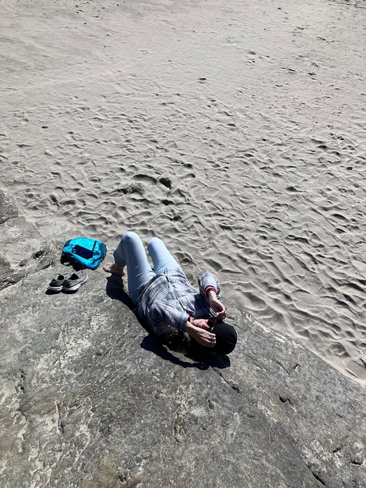 My bored wife “taking in the rays” while I’m exploring.