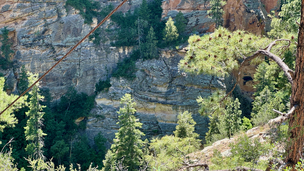 Tram cable isn't nearly as interesting as that crazy geology across the canyon.