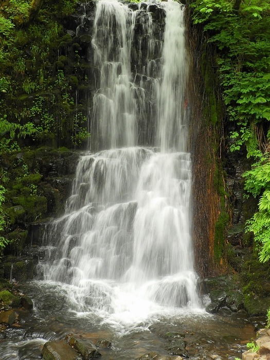Upper Coopey Falls. I am balancing on a ledge here and zooming in. It's the only way you can see the whole thing, otherwise the thick foliage along the trail only gives you a limited view. Those colorful strands on the right are Willow roots.