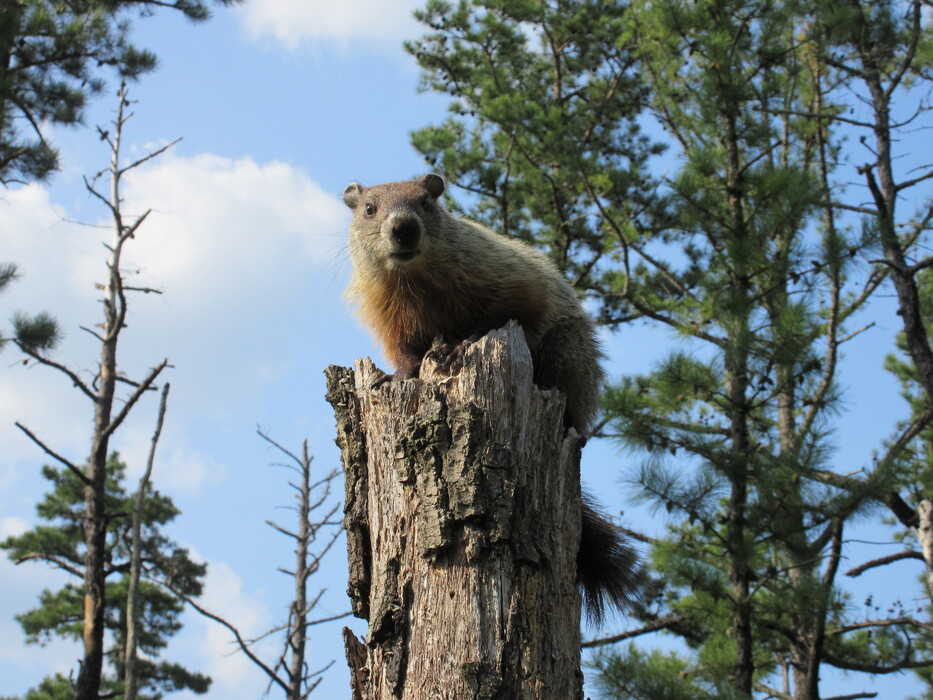 Tail is rather large for a Woodchuck. It is probably one. Unless a Fox Squirrel, as this guy was big.