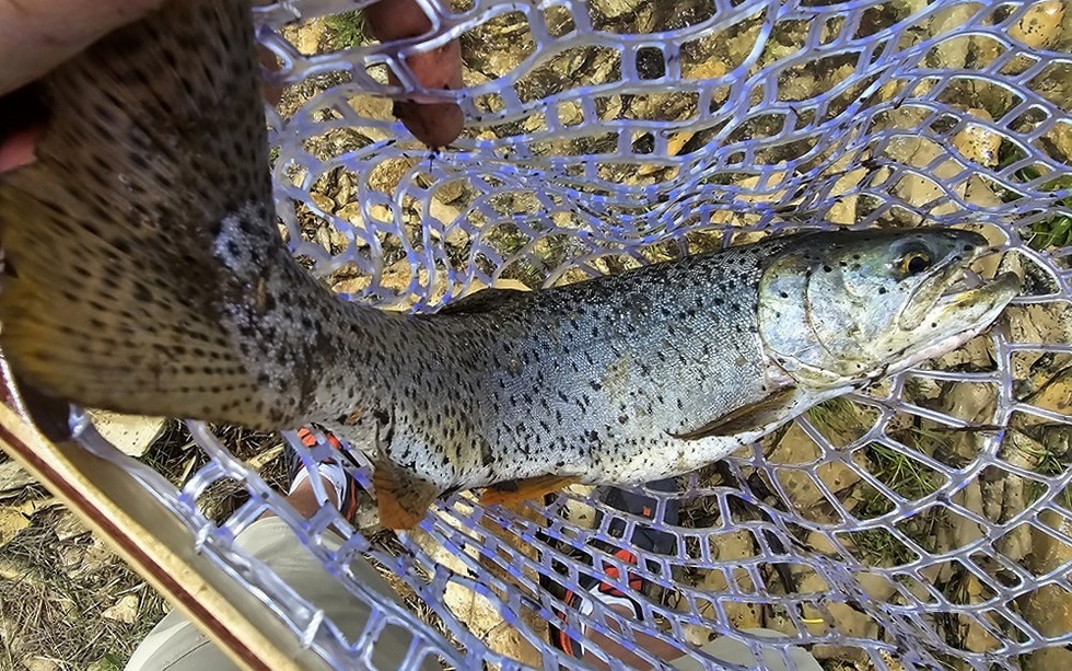 My first Cutthroat Trout ever. He got a bit dirty after jumping out of the water onto the bank before I could net him. Utah encourages Catch and Release for the Cutthroat. You can keep the sterilized Rainbow Trout if you want. All of mine went back in to live another day.