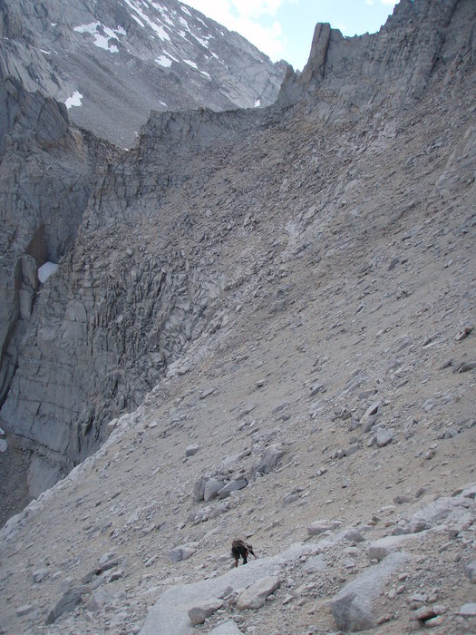 Russ is in the Military, and gets paid to exercise. He is in better shape than me and was almost always ahead of me. This is from day 1 when we climbed the Rockwell Variation. I lend some scale to the image.