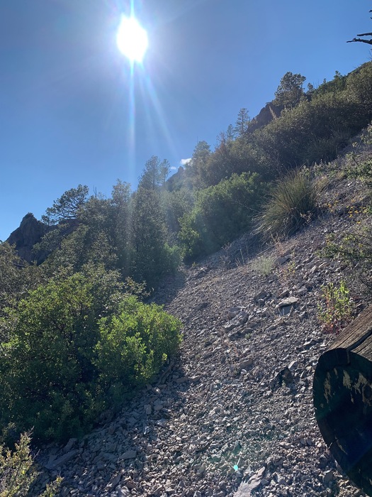 After Pine Park, Snowshed was loose rock and frequent patches of overgrowth.