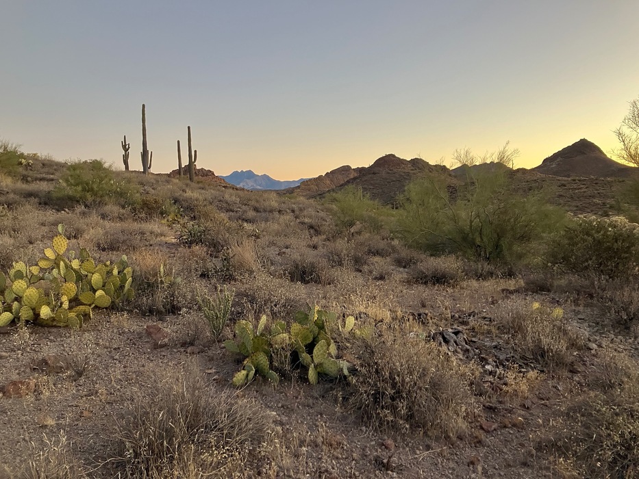 Approaching the saddle on the Willow with Four Peaks in the distance.