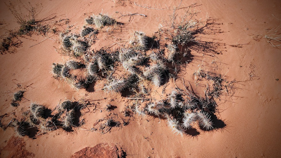 We learned some new terminology while at Coral Sand Dunes and thus I will share with you as we saw several of these and other Hummocks on this hike too: Plants can cause the formation of hummocks - clumps of plants that accumulate a mound of sand around them. Once a plant starts to grow, it will act as a small wind block and "catch" the sand. In order to survive, the plant must grown faster than the mound of sand accumulating around it.