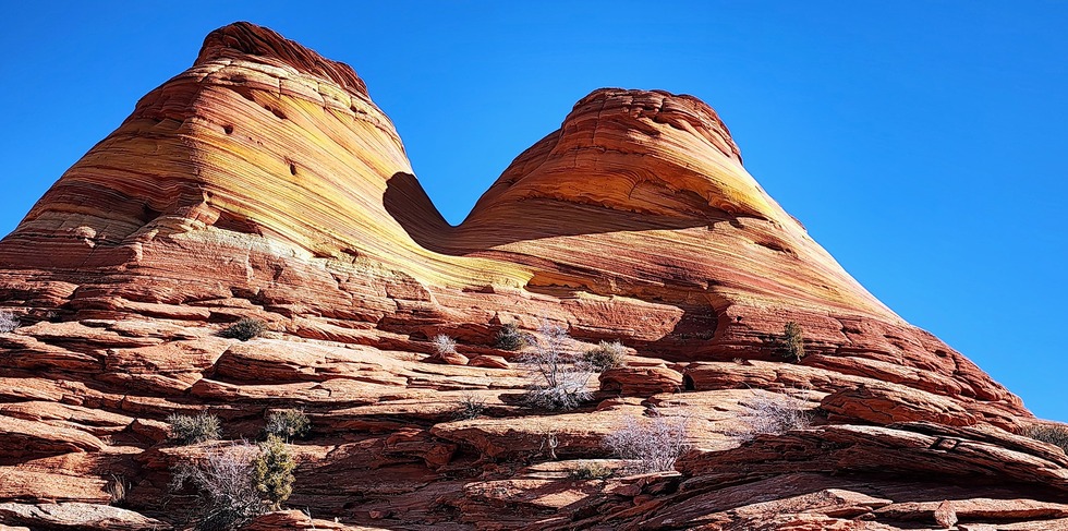 Coloring and Minerals: The vibrant colors seen in the sandstone of Coyote Buttes are a result of mineral deposits within the rock layers. Iron oxides (such as hematite and goethite) create the red and orange hues, while other minerals contribute to the range of colors, including purples, pinks, and yellows.