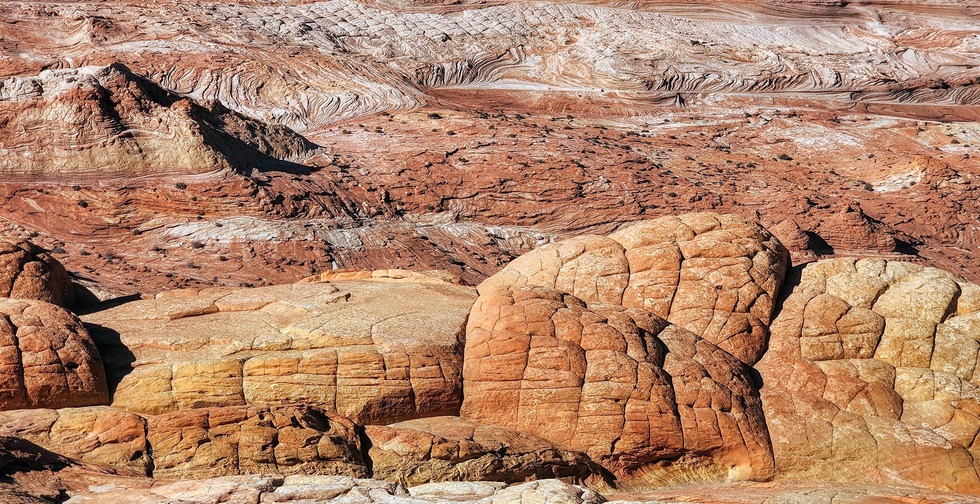 The layers of sandstone have a diagonal pattern that shows the direction of the wind when the dunes were migrating.