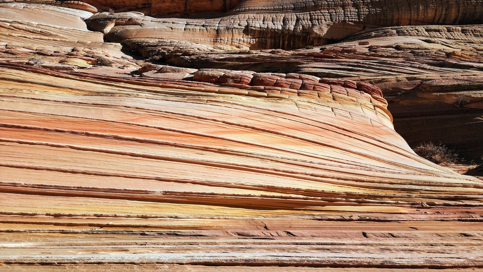 The Coyote Buttes’ geologic history and corresponding research spans sand dune deposition, dinosaur trackways, burial, diagenetic coloration, and later exhumation with fine finishing touches of smooth, wind sculpted weathering. This geosite is unparalleled for exquisite preservation of aeolian laminae in dramatic colors. https://iugs-geoheritage.org/geoheritag ... -the-wave/