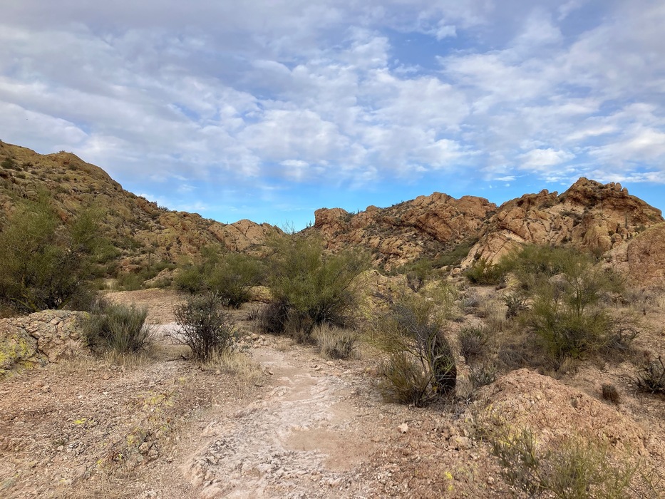 Looking at the Anniversary Arch Trail from the junction with the Javelina Rough Eye.