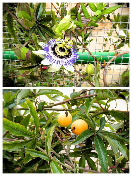 Passiflora caerulea, the blue passionflower, bluecrown passionflower or common passion flower, is a species of flowering plant native to South America. It has been introduced elsewhere. It is a vigorous, deciduous or semi-evergreen tendril bearing vine growing to 10 m (33 ft) or more. Its leaves are palmately lobed, and its fragrant flowers are blue-white with a prominent fringe of coronal filaments in bands of blue, white, yellow, and brown.
