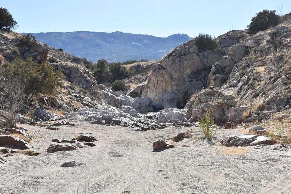 Coming up from below. evidence that quite a few off roaders have been to this point. Probably a popular place when the creek is running. I guess it is time to vent. People that leave doggie bags along the trail and the off roaders that have to throw their beer and other drink cans along the trail. It's not like they are hiking and have to carry the cans in their pack, they're in a vehicle and how hard is it to put it in a trash bag. They can always put the trash bag along the trail along with the people who think that dog crap is better off left in a bag along the trail. Okay I'm done.