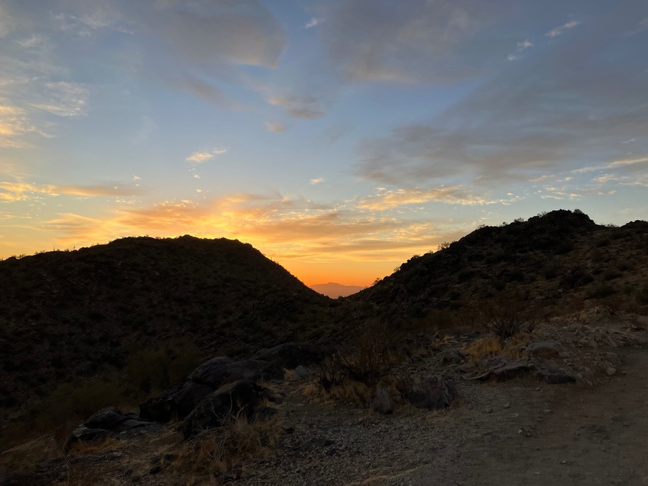 Near the top, just before the sun crests the peak. Love the orange hued peak in the background.