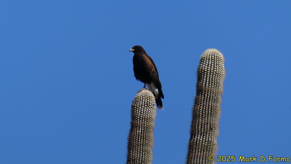 With enough patience I got a nice silhouette of the Harris Hawk. 62.32 °F