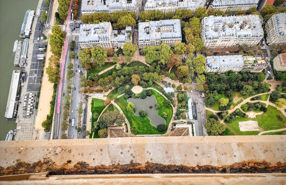 How about a photo looking straight down. You can see the legs of Eiffel.