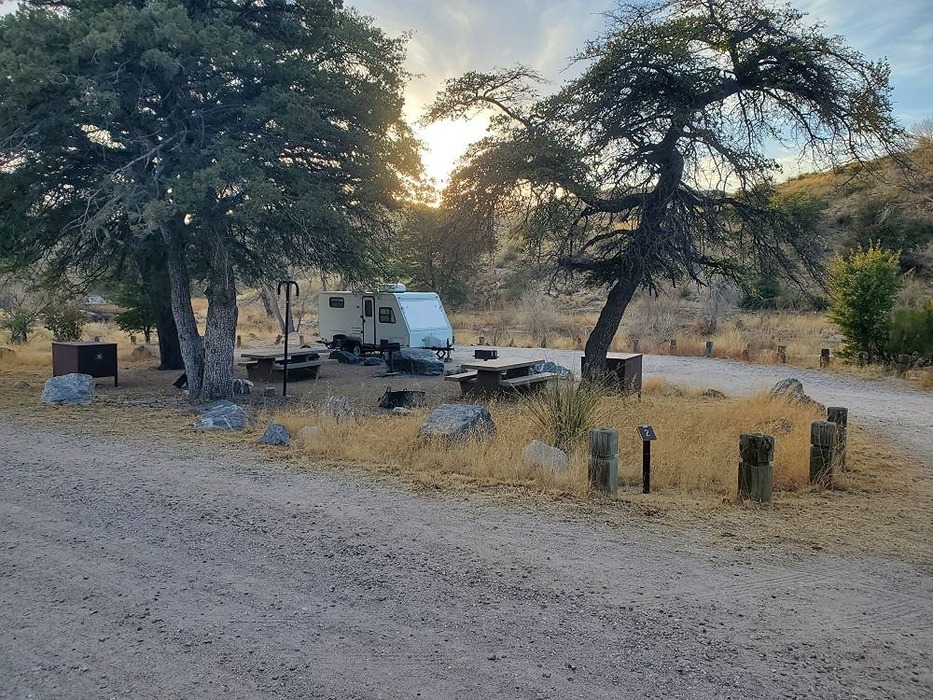 nice campsite with tables, bear lockers, a fire pit with grate, etc.