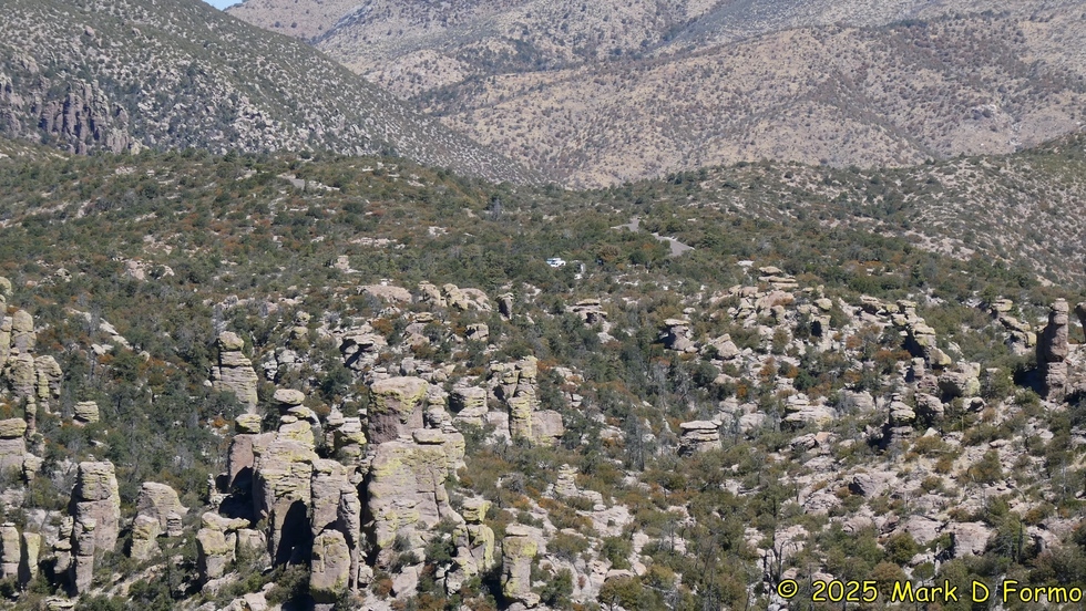 The Echo Canyon Parking lot from the end of the Inspiration Point Trail in the Chiricahua National Monument. 75.56° F