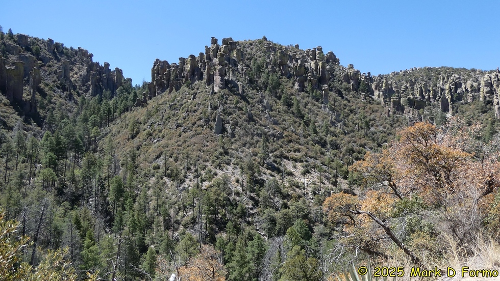 Inspiration Point (Where we were 50 minutes ago) from the junction of Hailstone Trail, Ed Riggs Trail and Mushroom Rock Trail in the Chiricahua National Monument. 74.30° F