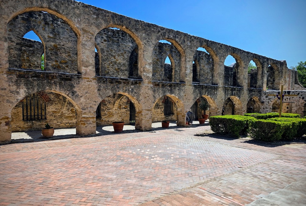 The rounded Roman arches and the pointed Gothic arches on the top floor of the convento are original. The Gothic arches constructed with red bricks on the bottom floor are from the Benedictine Monk restoration. Because of the Civil War and a tuberculosis outbreak, the project was never completed, and the monks moved back to Philadelphia.