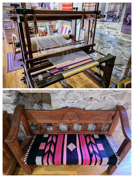 The ranger at the desk who was the wife of the other ranger made this in bottom photo. She use the old loom above.
