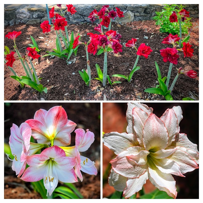 Amaryllis flowers range from 4 to 10 inches in size and can be either single or double in form. While the most popular colors are red and white, flowers may also be pink, salmon, apricot, rose or deep burgundy. Some varieties are bicolor such as purple and green, or picotee (having petals with a different edge color).