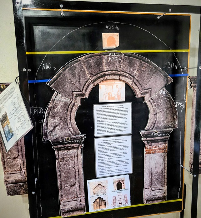 The doorway to the church at Mission Espada in San Antonio, Texas, is known for its unusual, irregular arched design. While the exact reasons behind this distinctive feature are debated, common theories suggest it could be a result of a mistake during construction, a clever design choice due to budget constraints, or even stones being repurposed from a larger, unbuilt church.