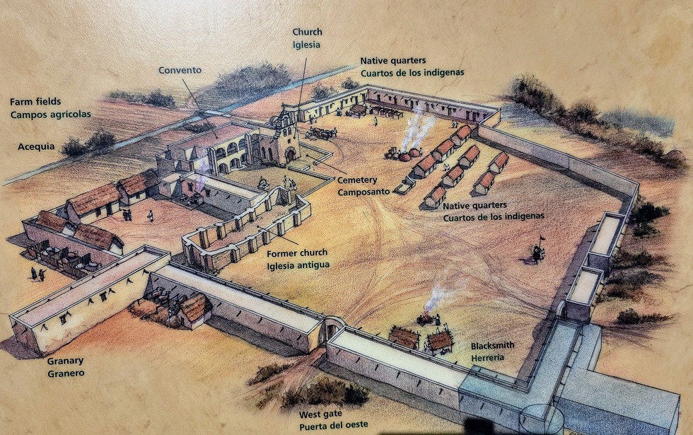 The Works Progress Administration (WPA), an organization that put men back to work during the Great Depression, helped stabilize the ruins in the 1930s. However, it wasn’t until the 1950s that a thorough reconstruction project was undertaken by the Catholic Archdiocese and architect Harvey Smith Jr. to restore the church, convento, and sections of the defensive wall. Renovations included a new roof for the church, reconstruction of a well, and the partial rebuilding of the defensive walls. Smith was the same man who oversaw the WPA’s complete reconstruction of Mission San Jose.