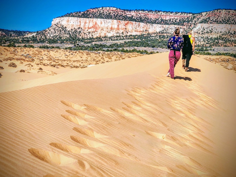 The "white cliffs" near Coral Pink Sand Dunes State Park are part of the Grand Staircase, a geological feature that includes various rock formations, including the white cliffs.