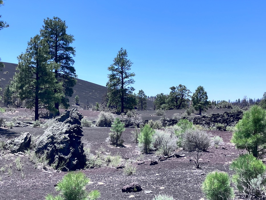 It’s an amazing contrast between the barren lava fields and the green pines dotting the desolate landscape.